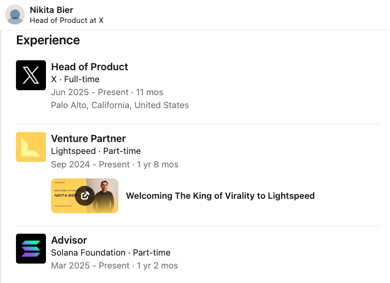 尼基塔·比尔于2025年6月加入X平台担任产品负责人,此前三个月他刚在Solana基金会担任顾问职务。比尔表示加入该项目旨在帮助"选定公司启动并扩展应用程序",重点关注基于该网络开发的消费者移动产品。
