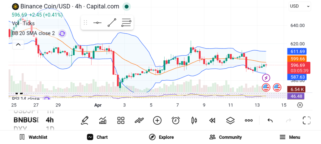 币安币(BNB)持续在明确的支撑与阻力区间内震荡,多空双方博弈激烈,近期均未取得主导权。成交量低于平均水平限制了价格波动,走势反映出市场的整体犹豫情绪。尽管行情平淡,更大规模的吸筹阶段似在形成——卖压开始减弱,随着下跌动能消退,买家正逐步重拾信心。