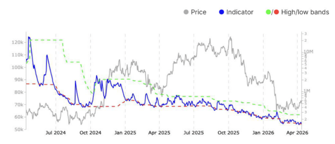 该指标上次达到此水平是在2024年11月,当时围绕2024年美国总统选举的热潮首次将比特币价格推升至100,000美元以上。