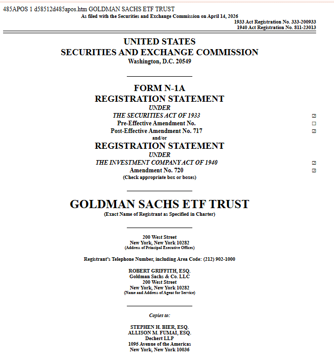 4月14日提交的申请文件推出了高盛比特币溢价收益ETF。该基金为主动管理型,旨在通过期权策略从比特币相关敞口中产生月度收益。