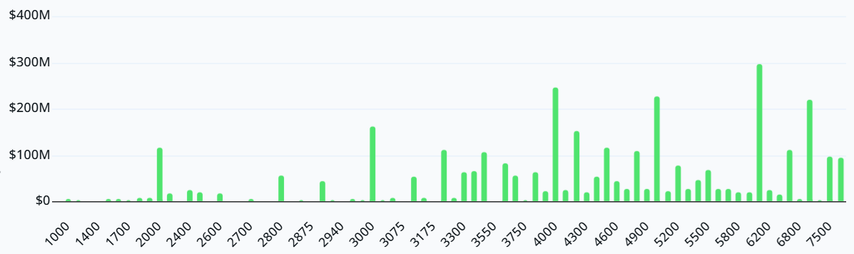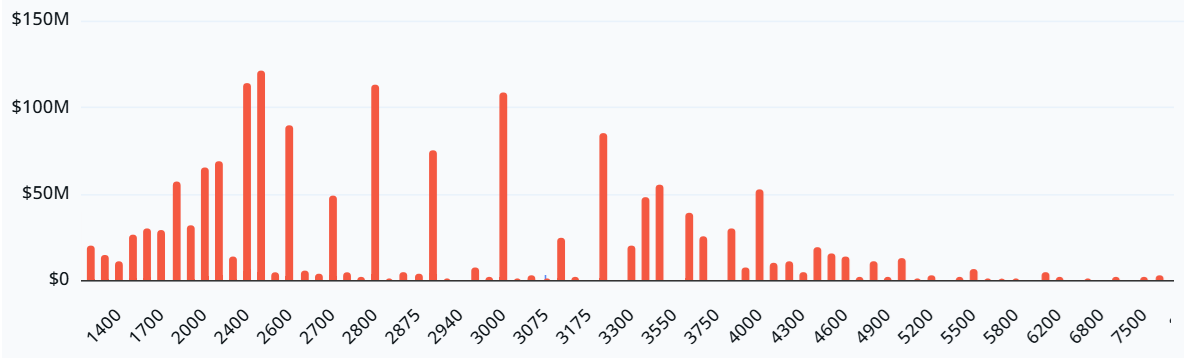 Deribit占据了总未平仓合约的70%,芝加哥商品交易所(CME)以20%的占比紧随其后。但由于交易者将看涨押注集中在3500至5000美元的年末价格区间,本周五价值41亿美元的看涨期权大多将归于无效。仅有不到15%的看涨期权设置在3000美元或更低水平。