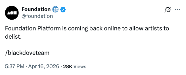 随着更广泛的NFT活动在2022年达到顶峰后降温,像Foundation这样的平台面临着流动性萎缩和可持续交易流减少的困境。Blackdove最初于2025年初宣布收购Foundation,并于一年后宣布完成所有权转移。