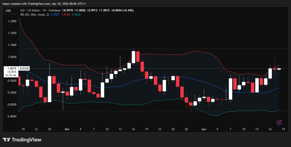SUI价格已在0.63美元至1.07美元区间内震荡数周,目前正逐渐逼近该区间的上沿边界。这一态势本身已显示出价格压缩的迹象。当价格在明确区间内持续整理后,往往会出现剧烈波动。