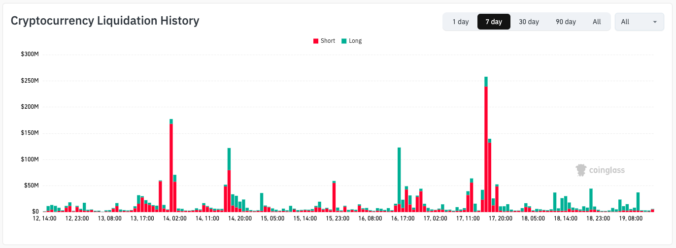 CoinGlass数据显示,在比特币价格回调期间,多头仓位遭受冲击,过去24小时全网加密货币爆仓金额达2.6亿美元。