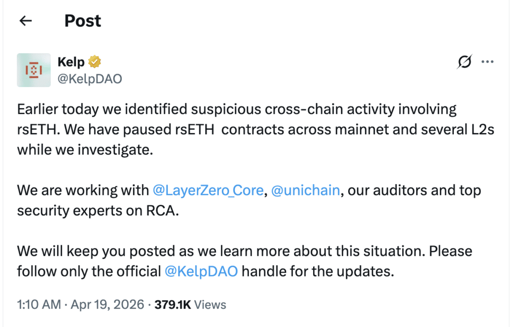 此次事件凸显了流动性再质押生态系统中更深层次的结构性风险。rsETH漏洞对Aave的波及,展示了衍生资产如何能将隐藏的脆弱性引入借贷协议。这提出了一个问题:当DeFi抵押品大规模失效时会发生什么?这也与Kelp DAO攻击对Aave的广泛影响相关联,揭示了跨链桥安全和杠杆循环中的弱点。