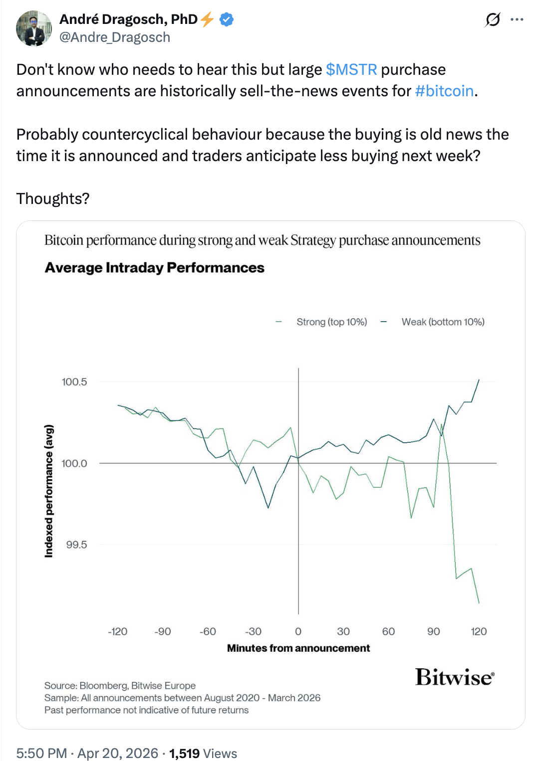 但自4月15日起,STRC交易价格一直低于其100美元面值,这可能限制Strategy本周继续筹资购买比特币的能力。