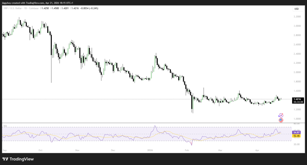 瑞波币XRP现报1.42美元,较2025年12月3.20美元以上的高位有所回落。图表显示,XRP价格在2026年前将保持看跌态势,当前价格正徘徊于1.40美元支撑位附近。