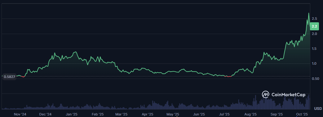 若Aster能实现与BNB链和以太坊的无缝集成,或将复制Solana早期基础设施驱动的发展轨迹。近期回调后,ASTER价格低于2美元,为其Layer-1主网上线前提供了潜在入场机会。对于看好隐私交易平台的投资者而言,Aster具备显著上涨潜力。
