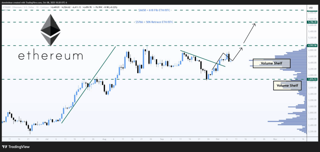 但分析师Donald Dean对以太坊长期潜力保持乐观,指出若ETH价格能突破4955美元水平,下一目标位将上看5706美元。