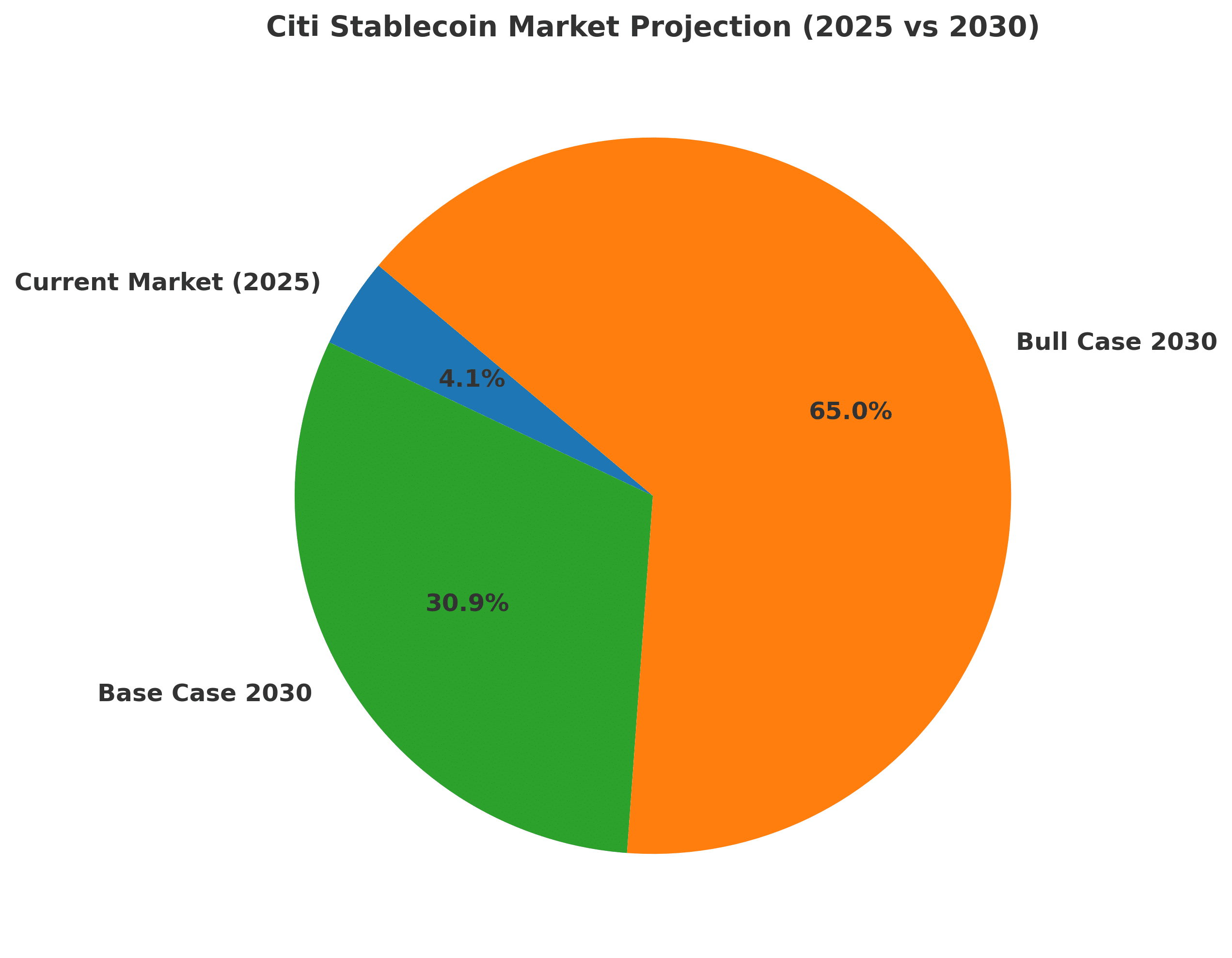 每隔数月,加密货币市场总会出现新的预测引发关注。本周,花旗银行发布报告将2030年稳定币市场规模预期上调至惊人的1.9万亿美元。在最乐观情境下,该行认为牛市可能推动发行量接近4万亿美元——这个数字相当于某些国家全年GDP总量,如今却可能被数字资产市场的单一板块所承载。