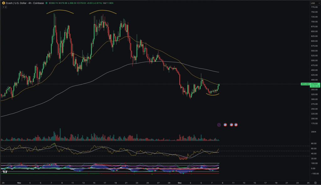 ZEC近期的价格走势已显现反转迹象,进一步支撑了上行可能性。该加密货币形成了更高的低点,这一技术指标暗示趋势可能发生转变。分析师ElonTrades指出,这种形态强烈预示着ZEC可能开启上升轨迹。