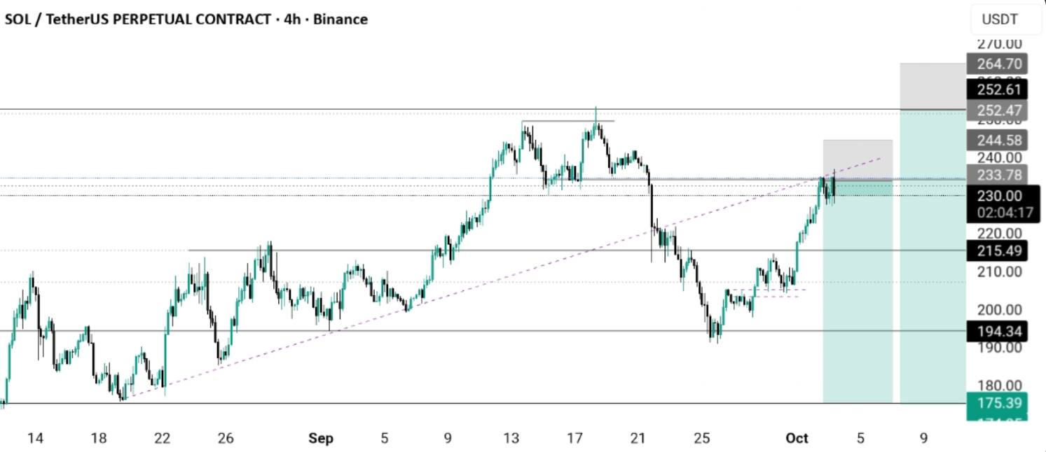 在吞吐量指标、DEX交易量和质押流入量方面表现突出。价格在227美元支撑位企稳后,正测试237美元阻力位。若买方动能持续,年末可能迎来新高。国家级银行稳定币试点和Firedancer升级等利好,使其稳居热门投资清单。