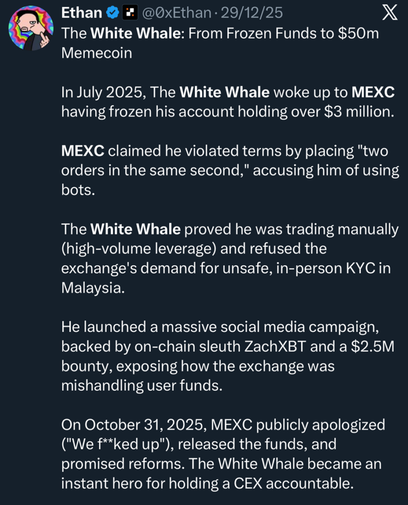 2026年1月出现的新指控,使得2025年8月的“白鲸”与MEXC纠纷重新成为加密新闻焦点。