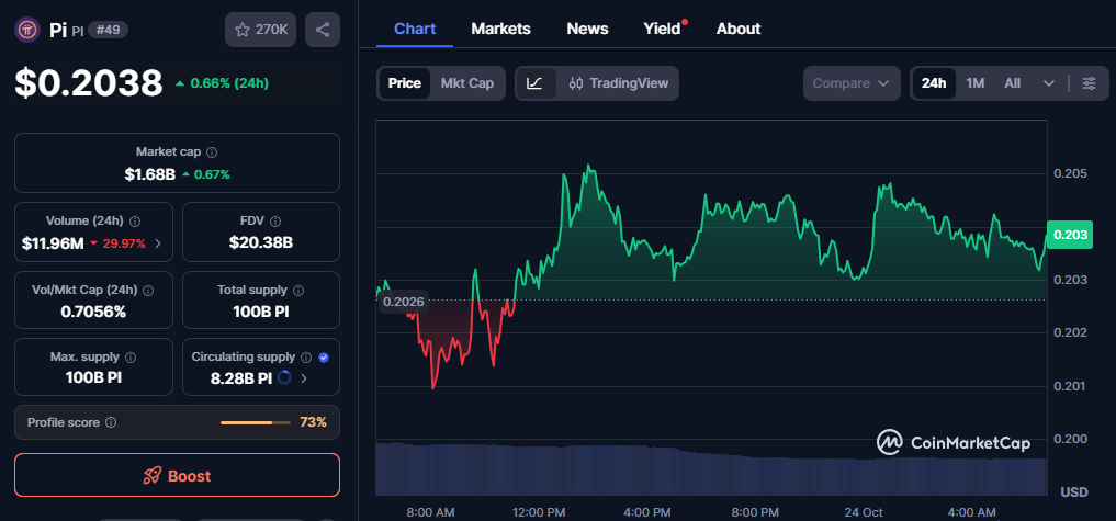 Pi币坚守0.20美元支撑位 展现市场波动中的韧性