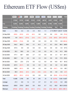 灰度ETHE和富达FETH分别以3060万、3010万美元净流出紧随其后。市场对SOL和XRP ETF的炒作热度有所降温,相关产品上周分别录得9330万和6160万美元资金流入。