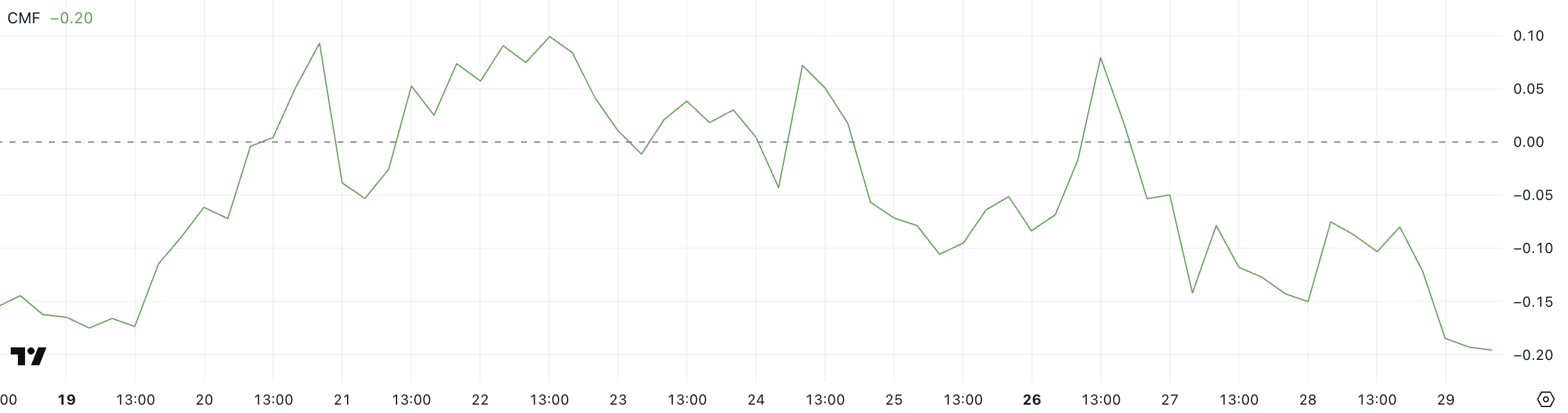 PI的CMF指标已跌至-0.20,创5月17日以来新低: