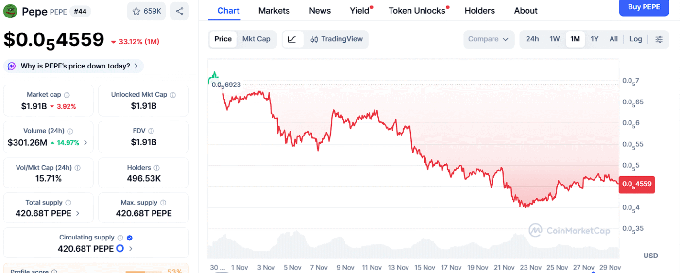 佩佩币(PEPE)目前交易价格约为0.000004559美元,在交易员持续建仓和社交情绪改善的推动下持续形成看涨结构。该代币在0.00000429美元、0.00000406美元和0.00000387美元处获得稳固支撑,这些价位持续吸引逢低买入者,强化了迷因币的抗跌性。这些支撑区域彰显了佩佩社区驱动需求的韧性,即使在市场波动期间也不例外。