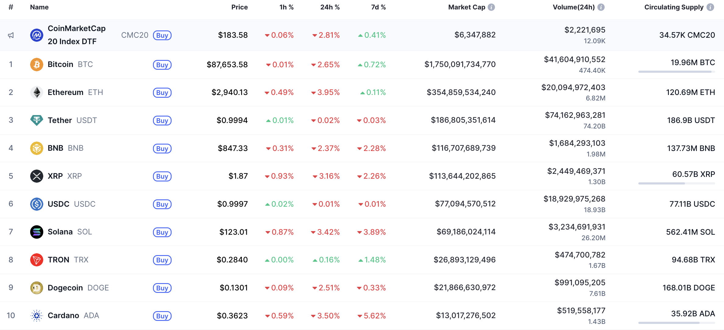 根据CoinMarketCap数据显示,今日市场几乎全线飘红。