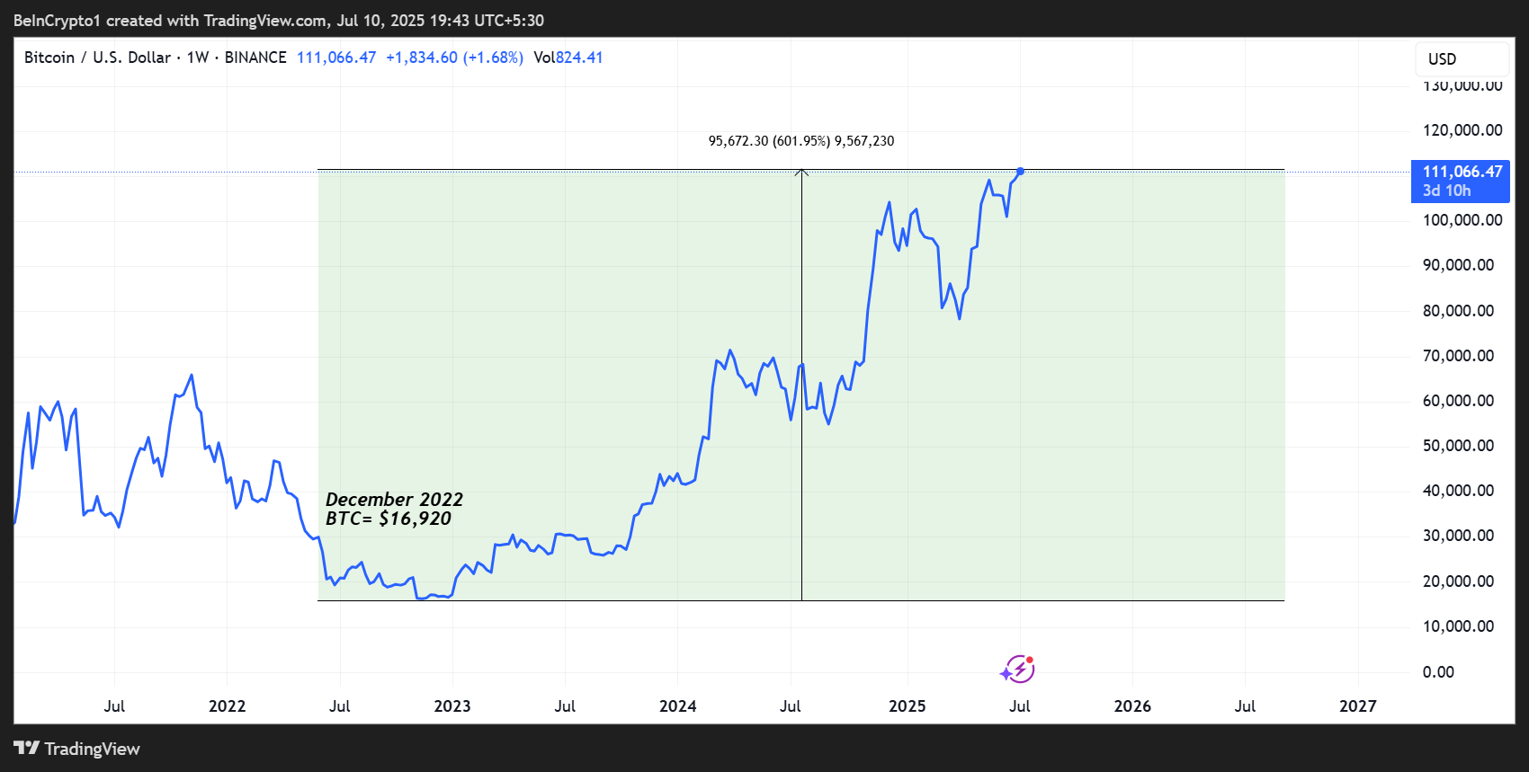 这位比特币极端主义者援引其2022年的预测,当时他便预言比特币将飙升至22万美元。"自两年前那次访谈以来,比特币已上涨700%(2025年达22万美元的可能性很高),而黄金涨幅不足两倍。"尽管外界曾对其2022年的预测存疑,但比特币价值已从16,000美元的低点增长近600%,这一事实为当前预测提供了可信度——即便加密行业素以波动剧烈著称。