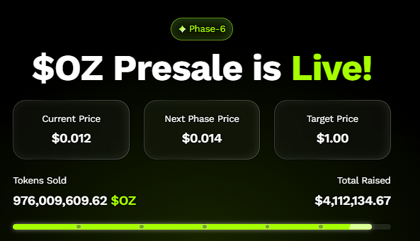 与依赖短期热度的投机型代币不同,Ozak AI具备真正的技术深度。该项目目前处于第六轮预售阶段(单价0.012美元),已融资超410万美元并售出9.75亿枚代币,显示出早期投资者的坚定信心。通过与Perceptron Network和SINT的合作,Ozak AI整合了超过70万个AI节点,可提供预测分析、信号处理和自主代理系统。