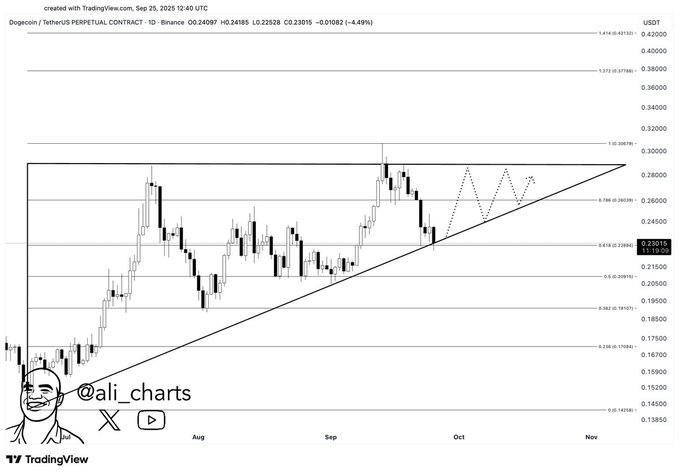 分析师Ali(@ali_charts)强调,狗狗币必须守住0.22美元关口才能维持反弹希望。尽管多次上攻受阻,该代币仍保持在关键结构支撑上方。截至发稿时,狗狗币24小时交易量达38.3亿美元。