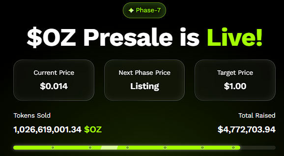 Ozak AI爆发式潜力的重要佐证来自其加速推进的预售表现——已筹集超470万美元并售出逾100万枚代币,展现出与历史上实现50-100倍突破项目相似的早期特征。