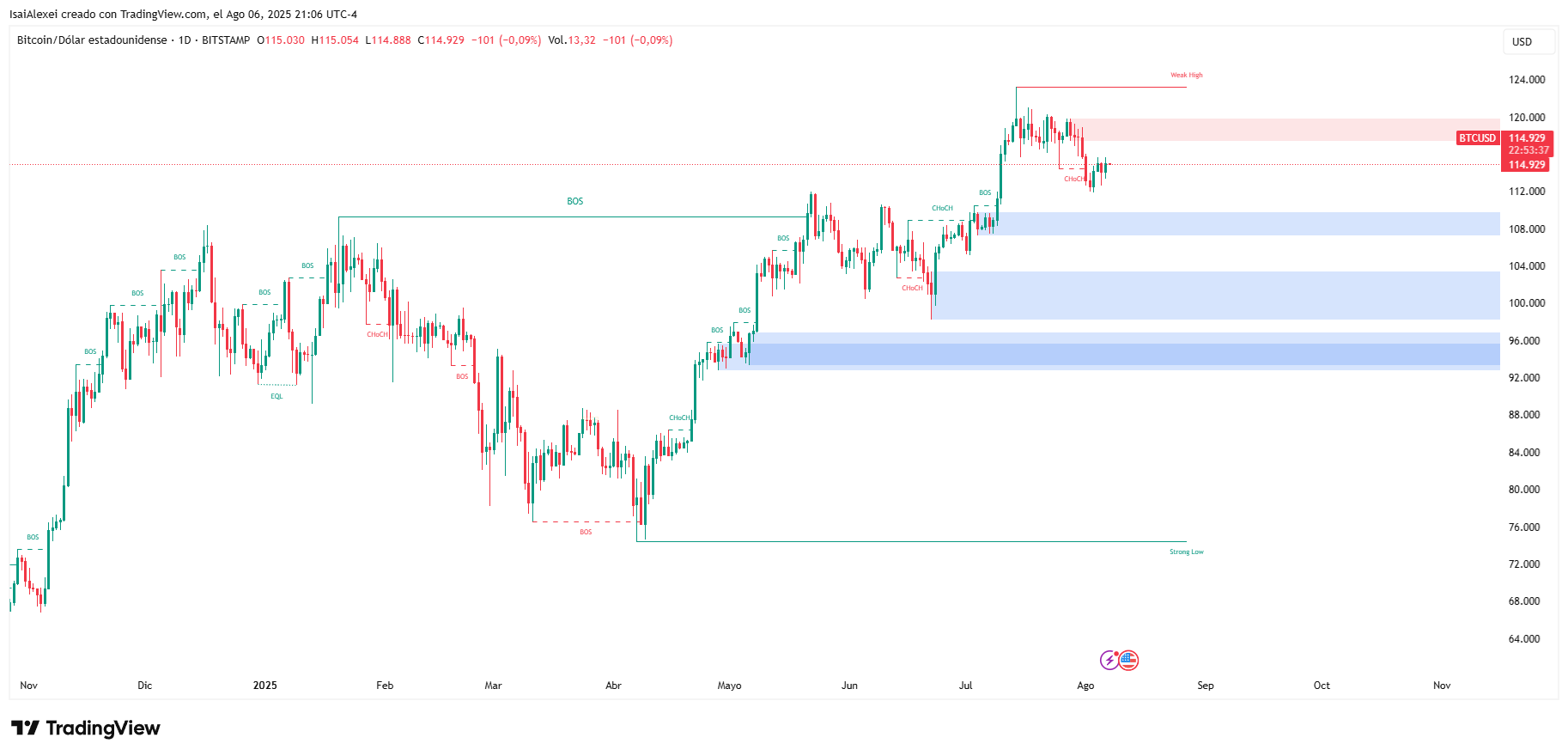 比特币交投于114,970美元附近 关键支撑位上机构持仓持续增长