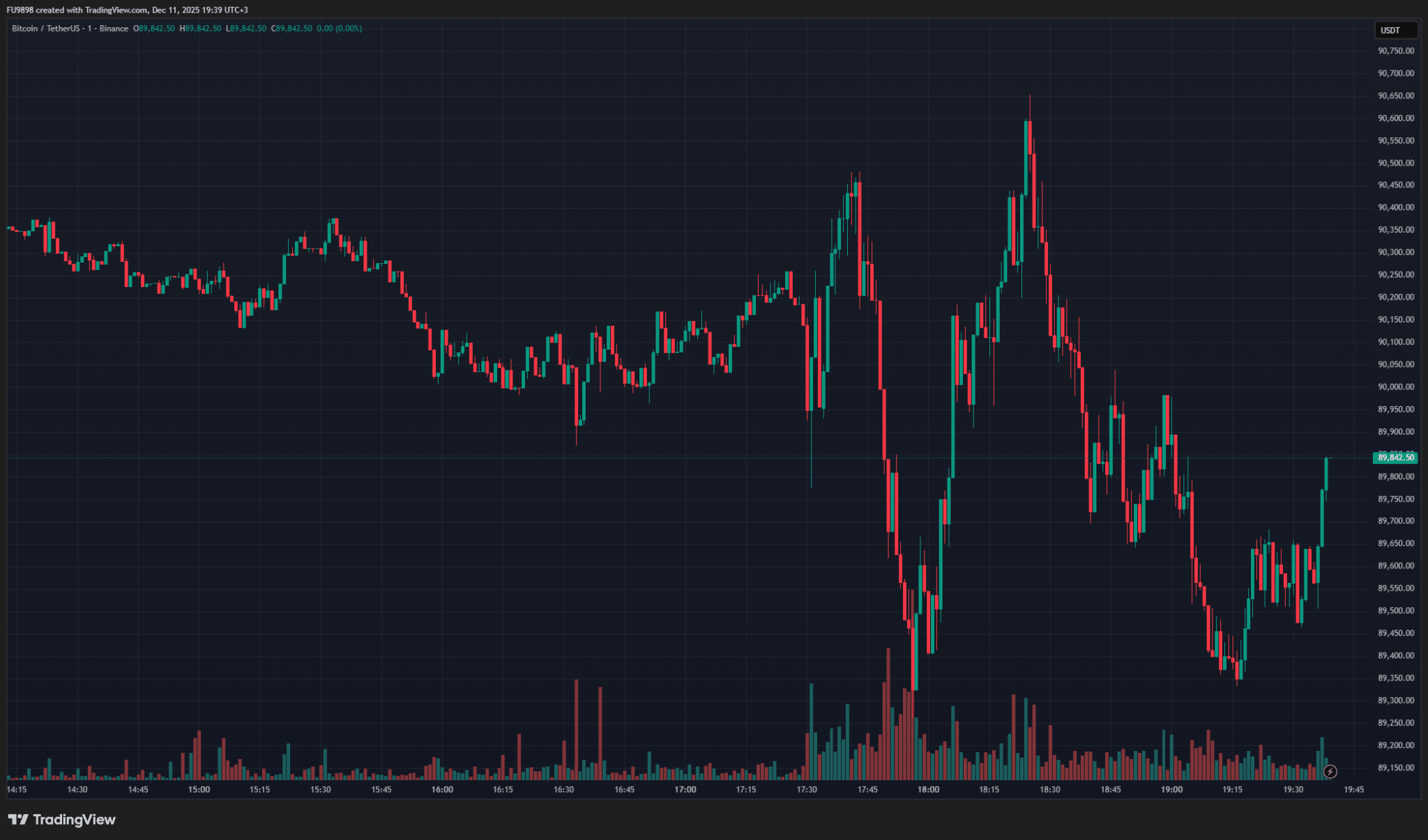 比特币在美联储决议公布后短暂冲高至94,000美元上方,但迅速回吐涨幅并跌破90,000美元关口。日内跌幅约达3.2%,最低下探89,525美元。在过去24小时内,市值最大的加密货币表现疲软,以太坊下跌5.5%,XRP下跌3.9%,Solana跌幅达4.7%。
