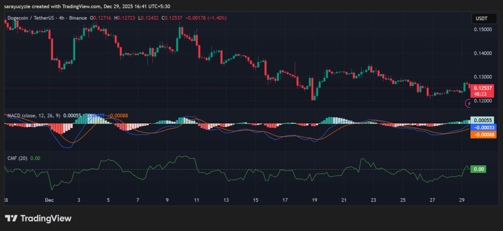 技术指标显示,移动平均收敛散度(MACD)线位于信号线上方,但两者仍处于零轴下方。这表明在更广泛的下跌趋势中正尝试趋势反转。此外,蔡金资金流量(CMF)指标停留在0.00,意味着买卖压力处于平衡状态。目前没有明显的资金流入或流出迹象,市场可能正处于整理阶段。