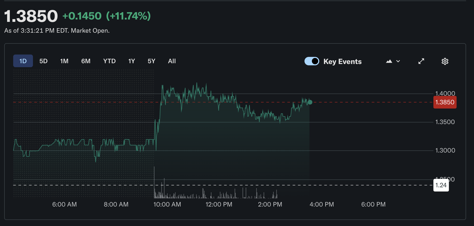 雅虎财经数据显示,ABTC股价周三大幅上涨约11.7%,达到每股约1.38美元。