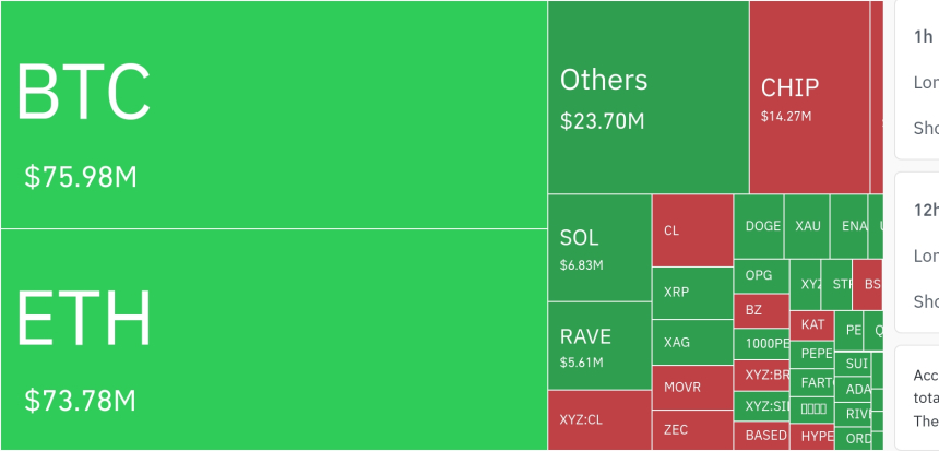 与此同时,比特币呈现显著上涨趋势。价格一度触及近79,400美元,随后稳定在78,012美元附近,20小时内涨幅达5.9%。这种快速的价格加速成为市场乐观情绪回归的主要推动力,同时也使市场直面80,000美元的关键心理关口。