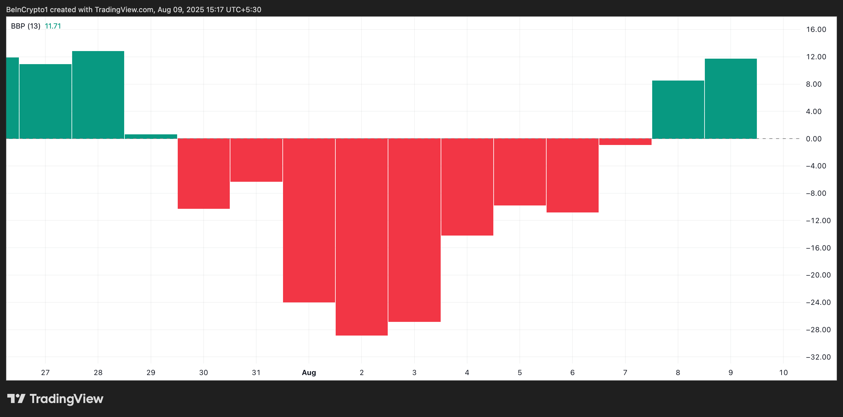 此外,SOL的Elder-Ray指数过去两个交易日持续为正,结束了连续九天红色柱状图的态势。这一转变标志着市场动能发生积极变化,撰稿时该指数报11.71。