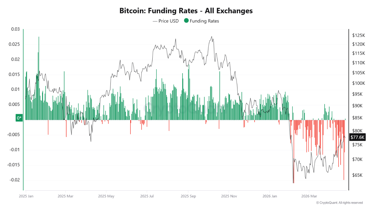 比特币融资利率深度转负,市场空头拥挤加剧逆转风险