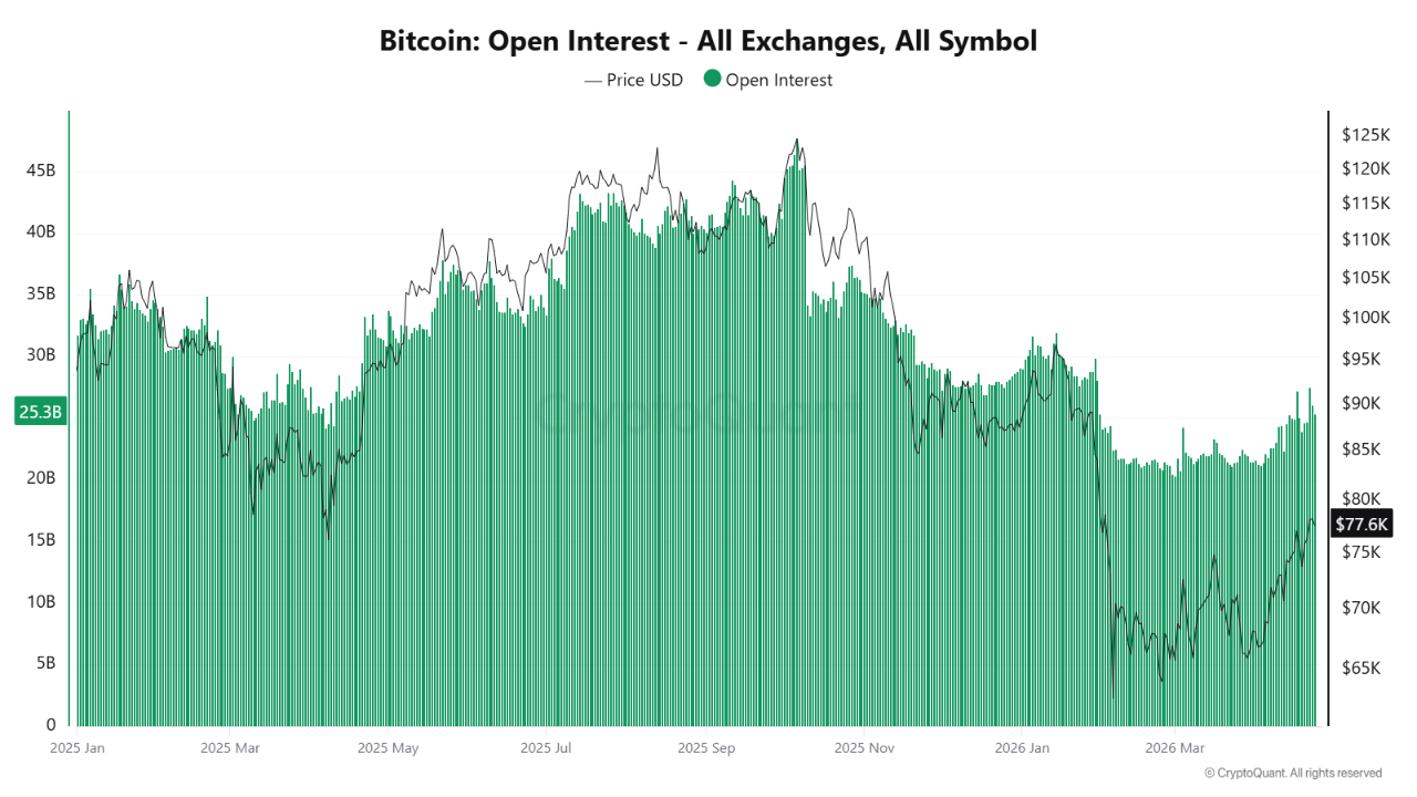 未平仓合约的增长本身并非看跌信号,仅反映市场活跃头寸增加。而负融资利率确认了这些头寸的方向,正定义了当前市场状态。