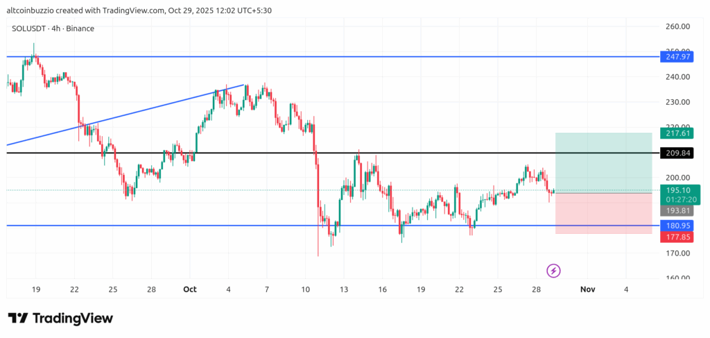 Solana当前报195美元。$SOL站稳180美元支撑位上方,探索下一目标。