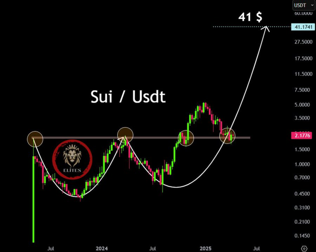 根据CryptoELITES的分析,当前SUI价格正处于他们所称的"最佳买入区域",预计将出现上涨。他们对SUI/USDT图表的技术分析揭示了一个长期杯柄形态,中期目标价位约为40美元。