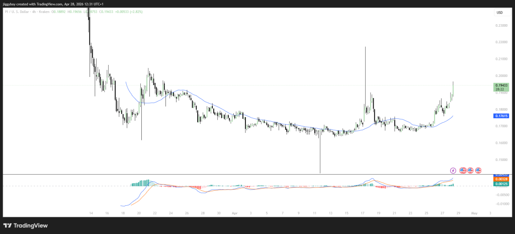 有可能,PI价格已在测试0.19美元水平。能否有效突破0.20美元至0.21美元区域,取决于2026年5月11日Protocol 23升级后,成交量能否增强以及上涨势头能否持续。