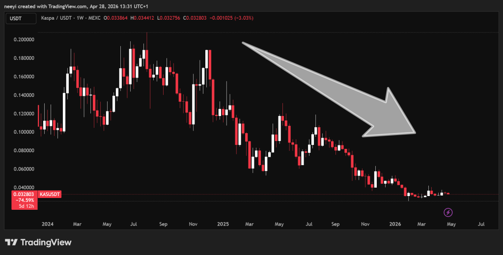Kaspa距历史高点已下跌超80%,十倍涨幅目标更显艰难