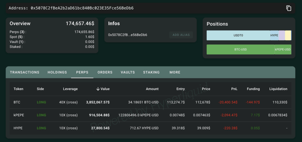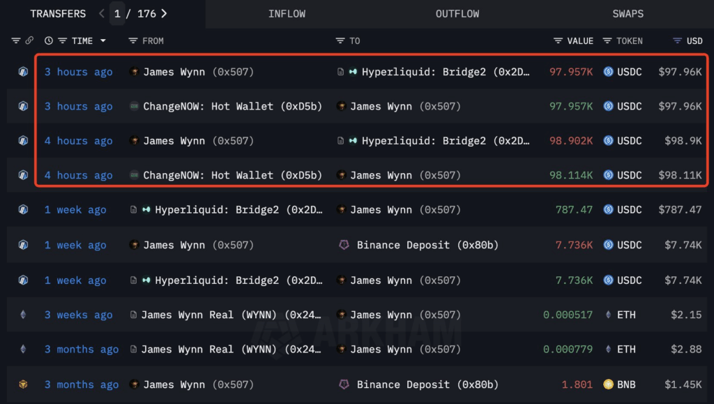詹姆斯·温恩已于2025年10月14日至15日重新激活其Hyperliquid账户,存入197,000枚USDC。根据Lookonchain数据,他最新在比特币、PEPE和HYPE上开设了总计480万美元的杠杆多头头寸。此次回归距离他公开批评该平台并力推竞争对手Aster已过去数月。