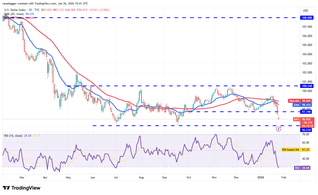 美元指数(DXY)周二跌破移动平均线,并于周五跌破97.74支撑位。