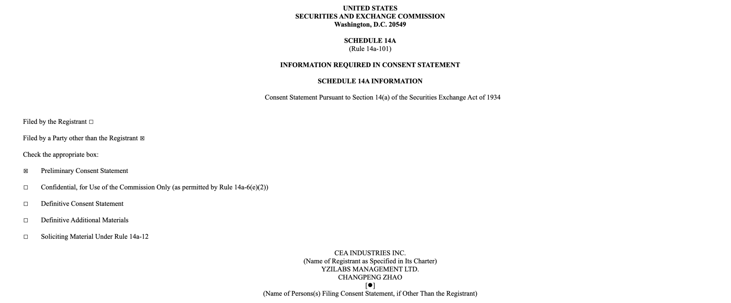 CZ旗下YZi Labs意图掌控CEA Industries 指责其股东价值遭“毁灭性破坏”