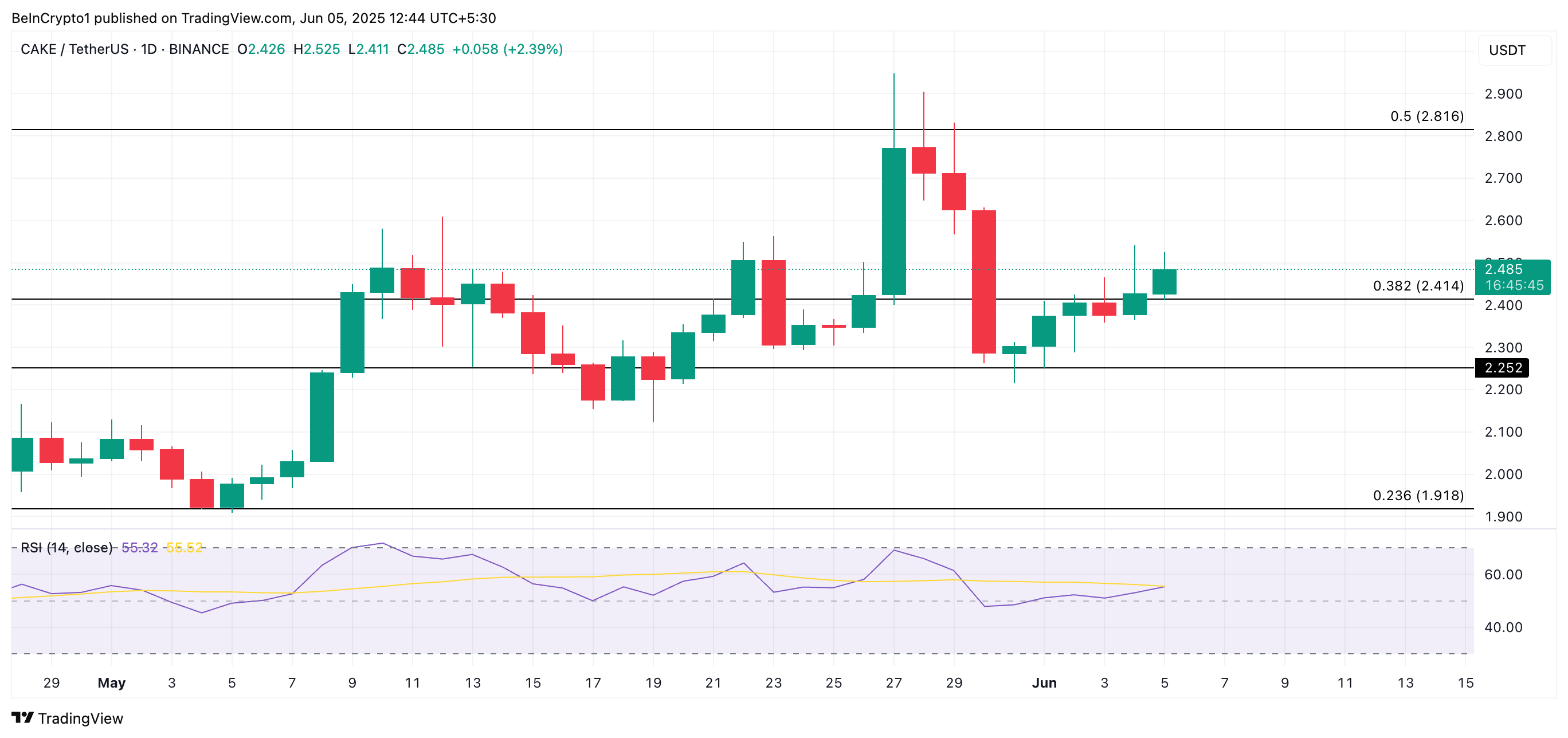 仍保持上涨态势。该代币现价2.48美元,自5月31日以来已攀升9%。今日伴随价格走高的成交量激增更印证了这一牛市趋势——过去24小时交易量暴涨88%,表明投资者兴趣升温,对该资产的需求持续增长。