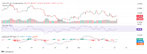 包括MACD金叉和RSI指标回升在内的技术指标显示,在经历近期抛压后,ADA价格趋于稳定并呈现短期走强态势。