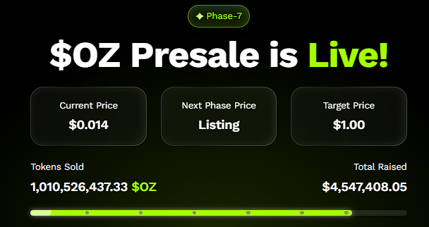 目前处于第七轮OZ预售阶段的Ozak AI已募资超450万美元,售出逾10亿枚OZ代币,显示出强烈的早期投资者兴趣。其技术深度与合作伙伴关系使其区别于其他AI主题项目: