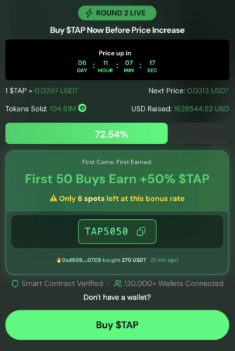 1亿枚$TAP代币售罄 加密货币预售需求激增