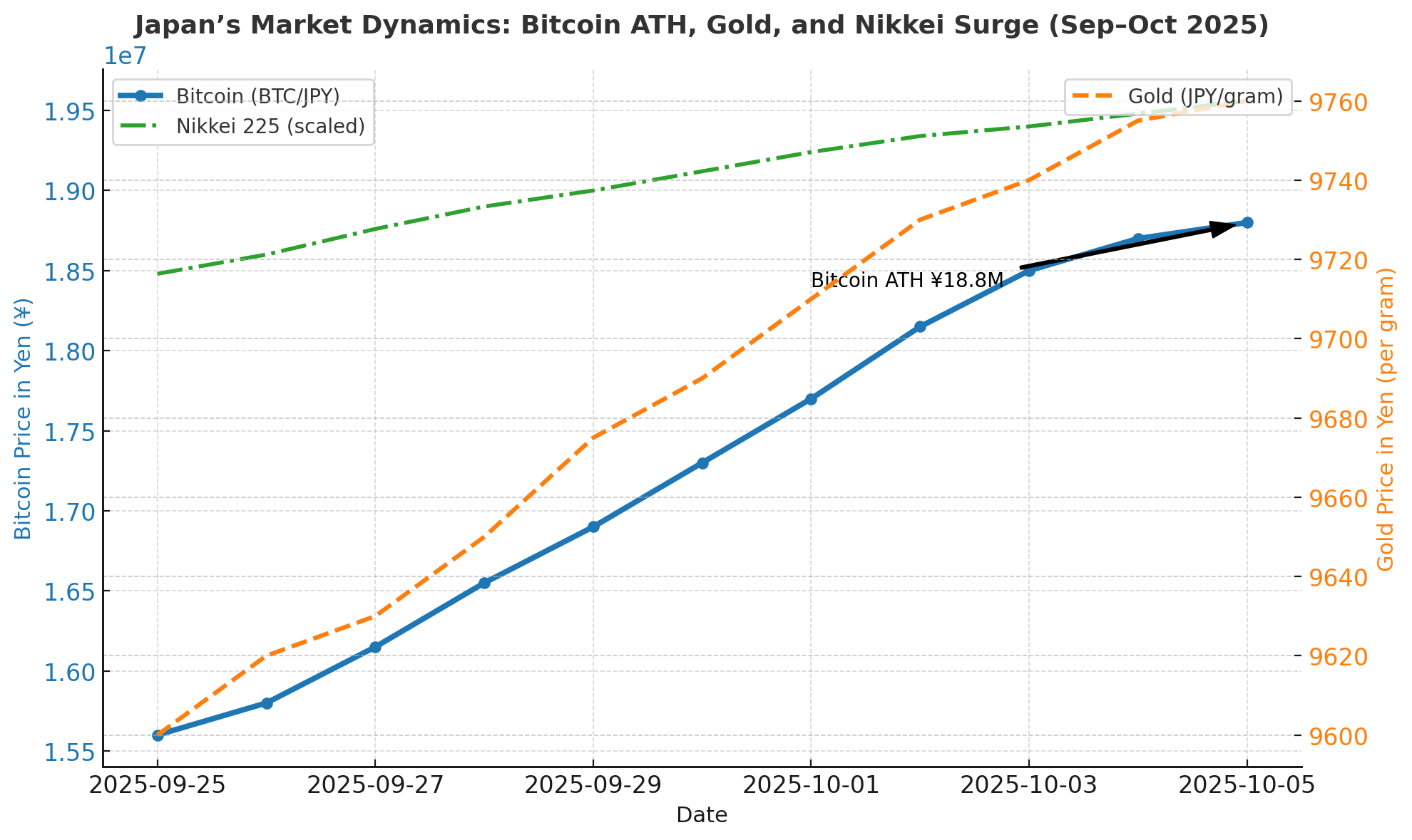 比特币价格再次成为全球焦点,这次源于日本新任首相高市早苗重启"安倍经济学"的举措,该政策在传统货币和加密市场引发连锁反应。随着日元跌至数月低点,比特币兑日元汇率突破1880万日元大关,创下历史新高。