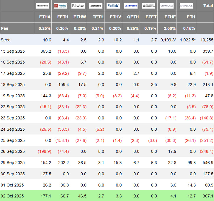 以太坊ETF单日流入3.07亿美元,其中贝莱德贡献1.771亿美元,凸显机构信心。