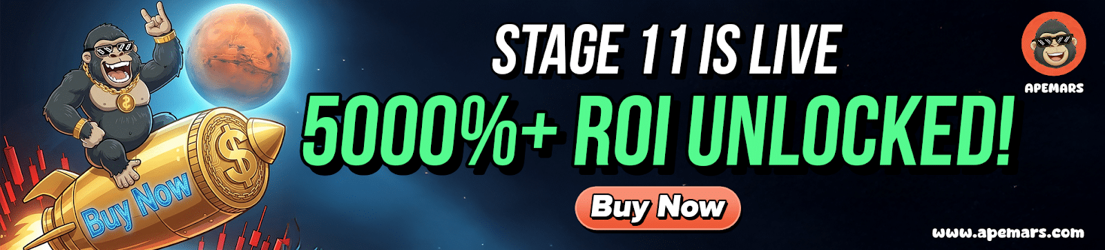 APEMARS ($APRZ) 现在在其预售的第11阶段提供了同样的机会。凭借其燃烧机制、23阶段的叙事驱动预售以及飙升的潜在投资回报率,这是采取行动的战略性时刻,堪称三月值得购买的百倍潜力加密货币。