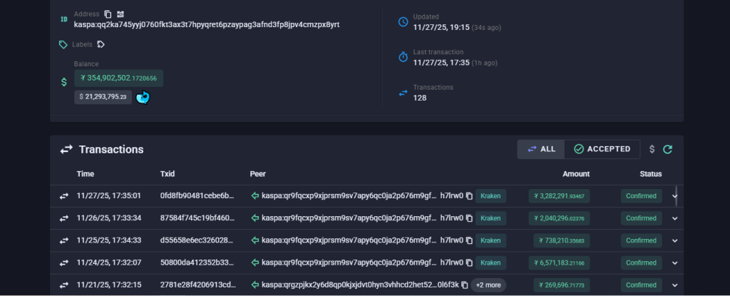 市场乐观情绪重现的重要推手是巨鲸活动。从KAS持仓顶级地址来看,持有总供应量1.316%的第八大钱包本月持续稳步吸筹。