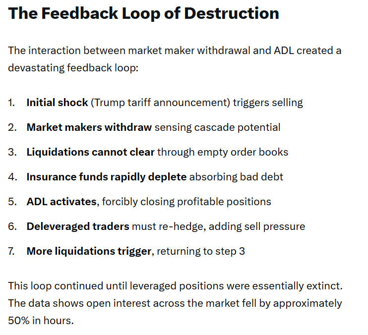 以190亿美元爆仓为标志的周五市场剧变使交易者意见分化。部分人士指控做市商故意抽离流动性制造连锁反应,另一些则认为这是波动市场中自然去杠杆周期的组成部分。